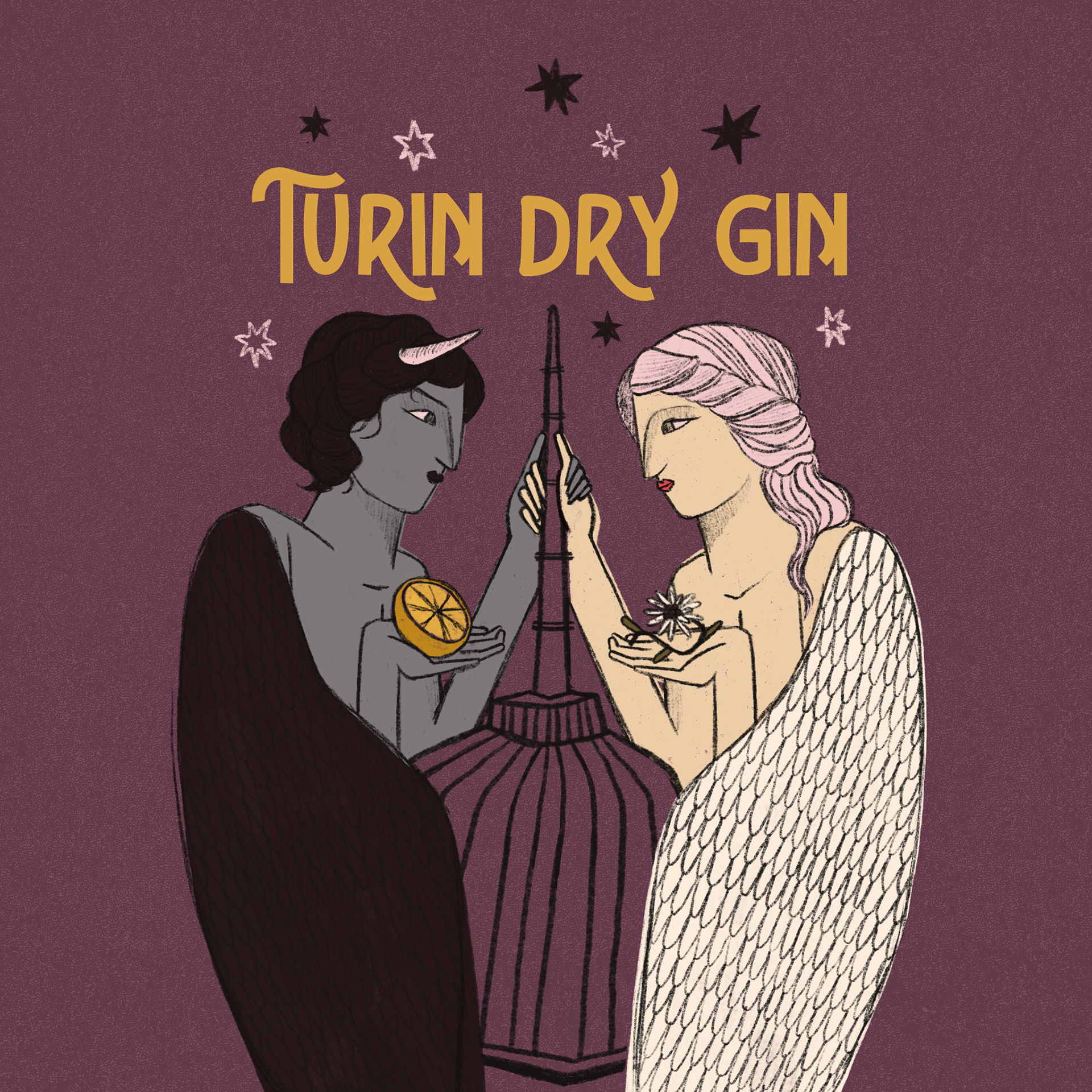illustration proposal for a contest made for a label of gin produced in Piedmont - Turin dry gin.